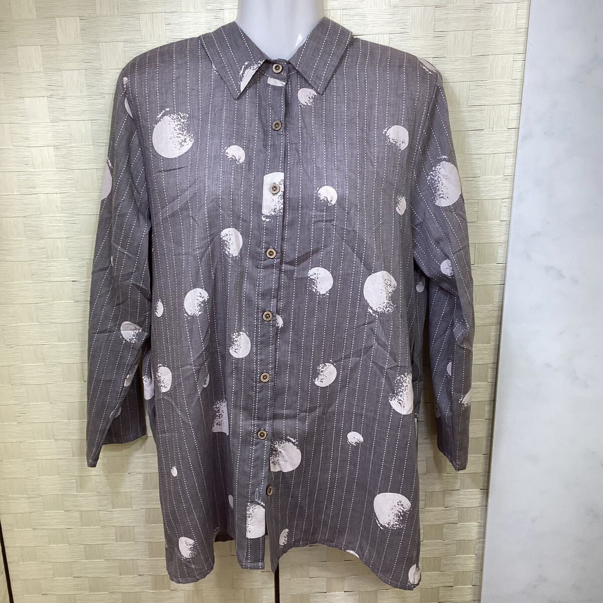 - Buddha メンズ 長袖 シャツ グレー系 サイズM〜L ポケット有り 薄手 M156