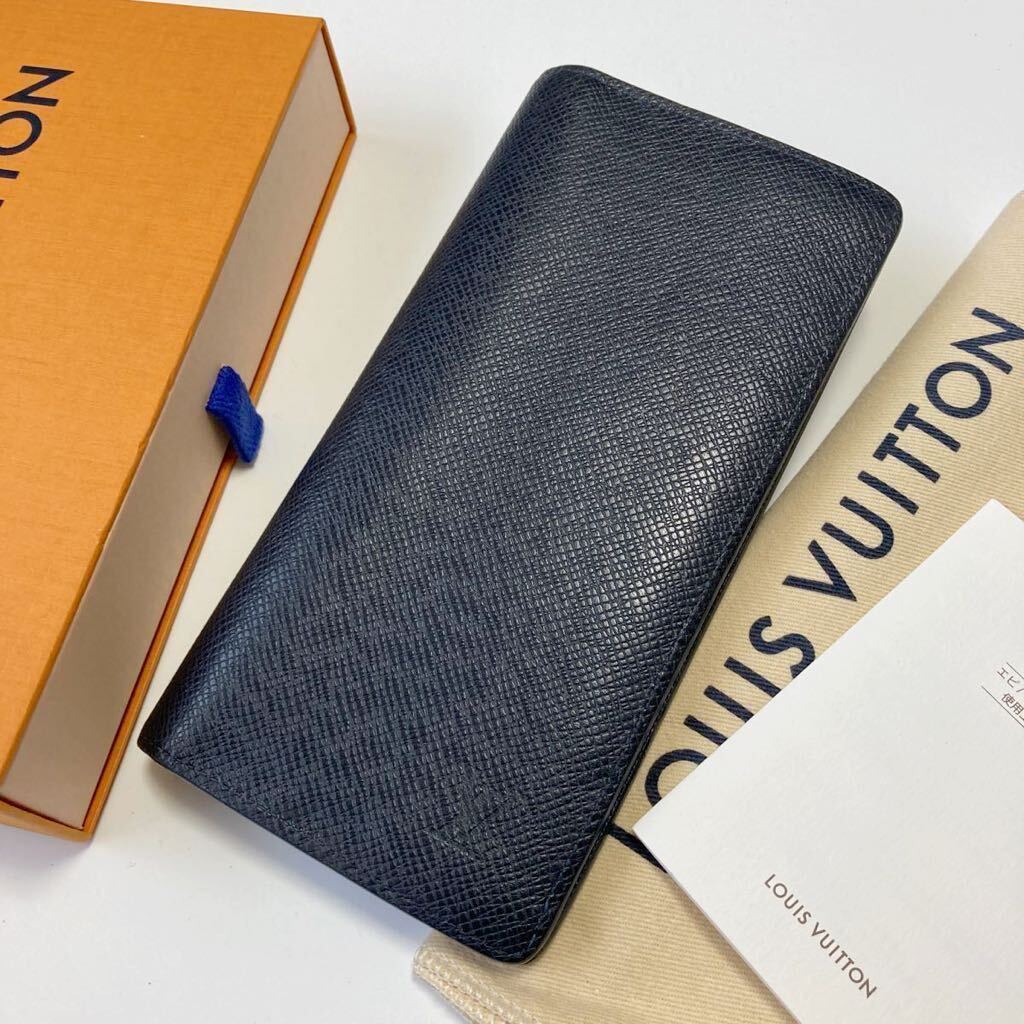> ★LOUIS VUITTON ルイ ヴィトン タイガ ポルトフォイユブラザ 折り長財布 メンズ 紺 中古美品【鑑定済み 本物保証】