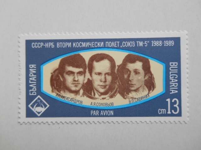 ブルガリア 切手 1989 第2次 ソ連 ブルガリア 宇宙飛行 ソユーズTM-5 1周年 37781989年発行のブルガリアの切手「第2次 ソ連ブルガリア宇宙飛行「ソユーズTM-5」1周年」です。
