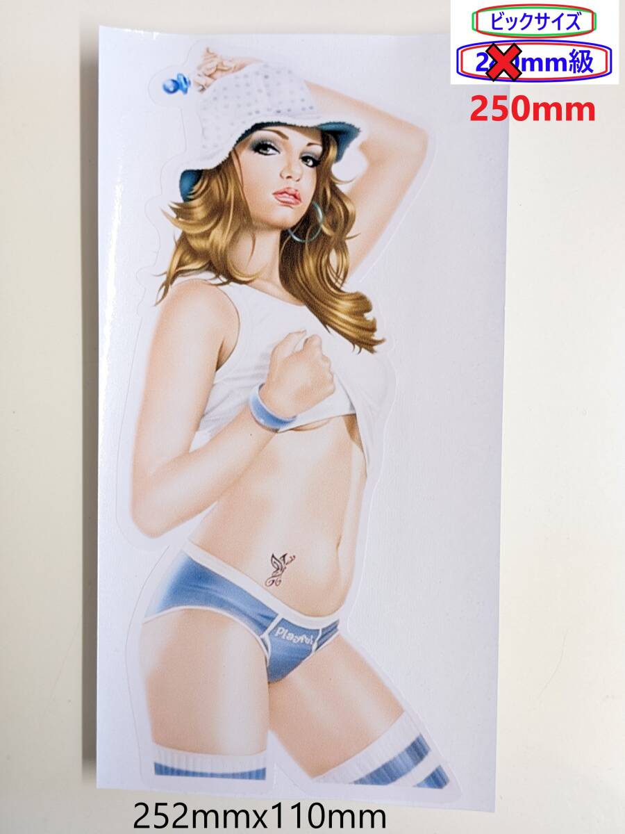 - 【特価BIG♪約252㎜x110㎜セクシー水色】アート ピンナップガール★セクシーガール★セクシーステッカー★レトロステッカー・ギター
