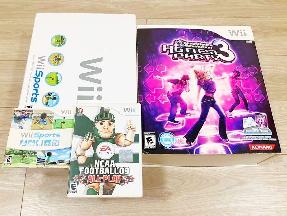 > アメリカ版 Wii本体とダンスダンスレボリューション hottest party & Wii sports / EA SPORTS NCAA FOOTBALL Nintendo