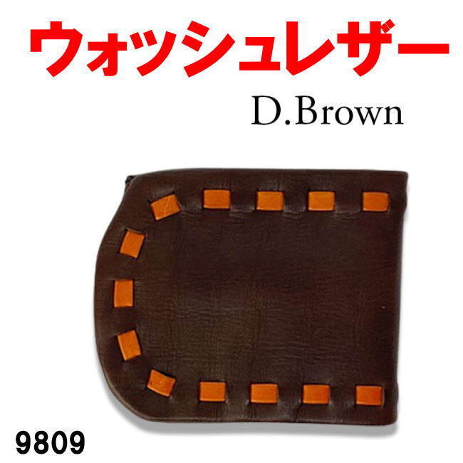 - ダークブラウン ウォッシュレザー 二折財布 9809 ウオレット 本革 牛革 メンズ レディース