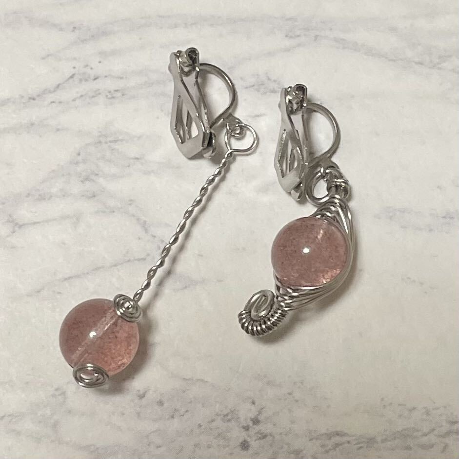 - A13. 天然石 イヤリング ピンクエピトード ハンドメイド サージカルステンレス アレルギーフリー ニッケルフリー アシンメトリー
