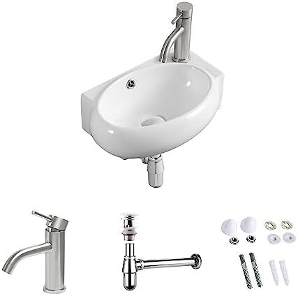 - 【新品送料無料】【混合水栓付き】 オシャレ 手洗い器 壁掛け 手洗器セット 小型洗面ボウル 洗面ボール 洗面台 壁付け型 手洗い