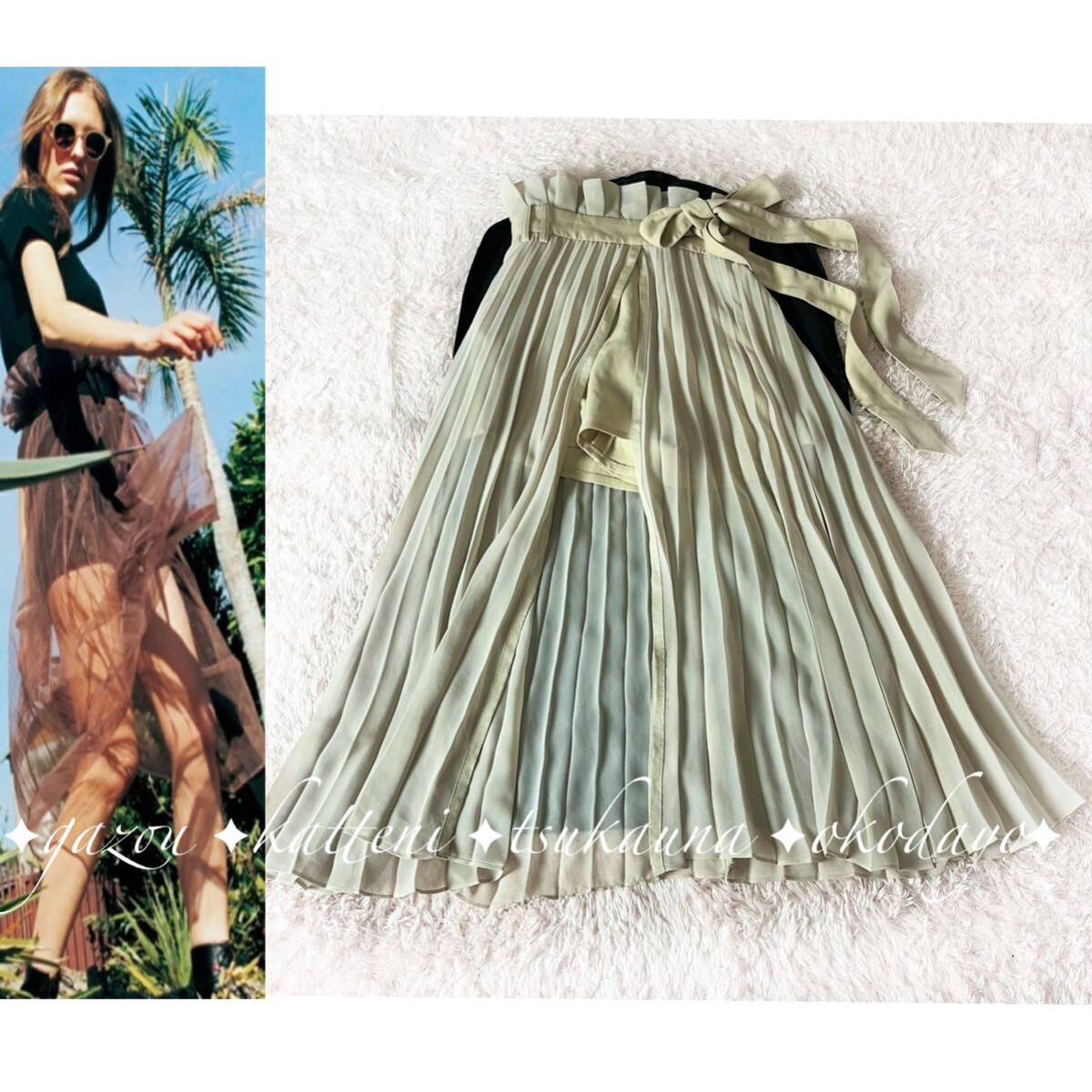 > SNIDEL スナイデル プリーツラップスカショートパンツ ロングスカート プリーツスカート シフォン フレア Aライン シースルー リボン S