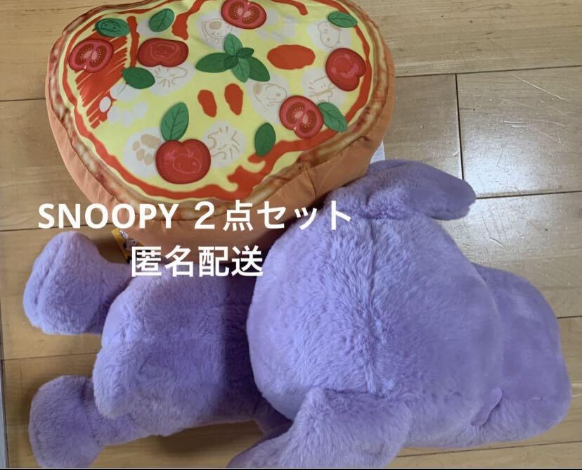 - スヌーピー 2種 セット PIZZA PARTY クッション 寝そべり BIG ぬいぐるみ ライラック パープル 匿名配送