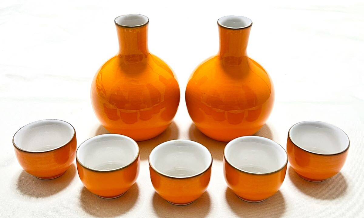 - 有田焼 春山作 朱色 徳利2本&お猪口5客 酒器セット 昭和レトロ