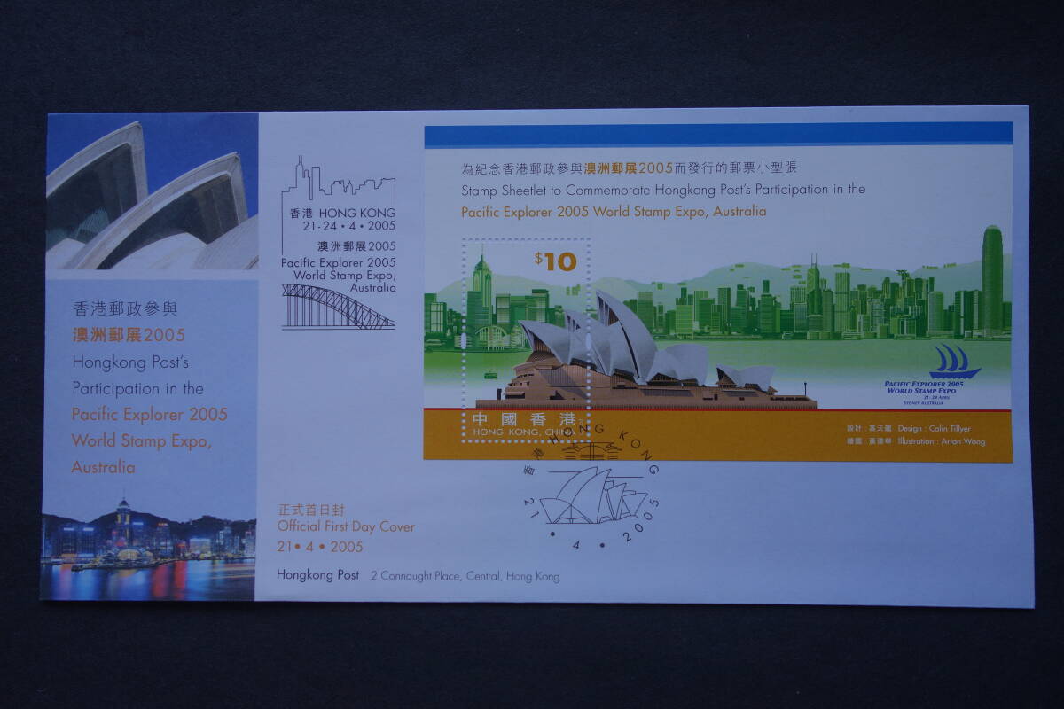 - 外国切手: 中国香港切手「2005年オーストラリア国際切手展参加」 小型シート 貼り FDC(初日カバー)