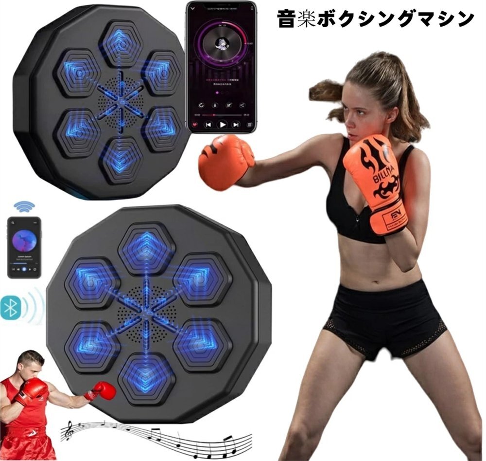 - 三点セット 音楽ボクシングマシン レッドグローブ付き スマート ディスプレイ付き 子供 大人 壁パンチングバッグ スマート