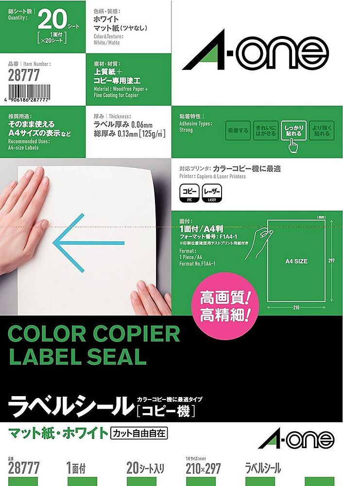 - メール便発送 エーワン ラベルシール コピー機 ノーカット 20枚 28777