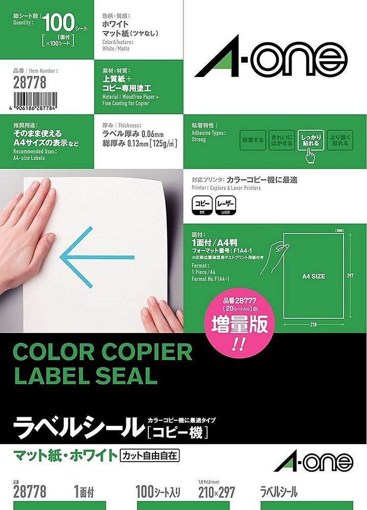 - エーワン ラベルシール コピー機 ノーカット 100枚 28778