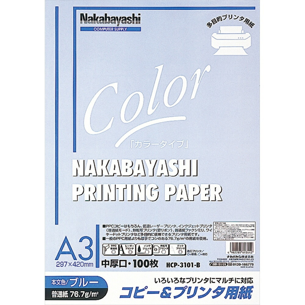 - ナカバヤシ コピー&プリンタ用紙 A3 100枚 ブルー HCP-3101-B