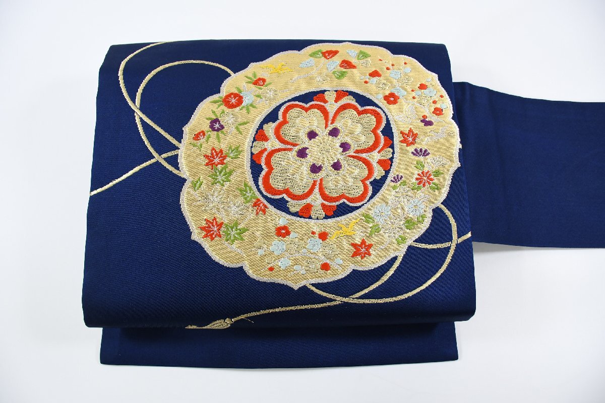 - 名古屋帯 花 文鎮 帯丈352cm ★着物屋 ne-11052 桜庭呉服店