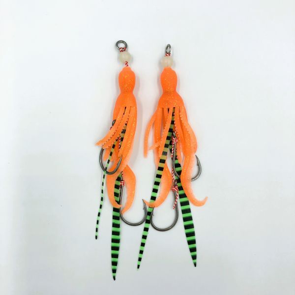 - 100063 耐久性・伸縮性の高い ツインカーリー タコベイト 7g オレンジラメ 2本セット タイラバ インチク マダイ ヒラメ タコロック風