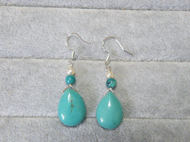 - R00086.ターコイズ カラーストン シルバー925 ハンドメイド ロングピアス