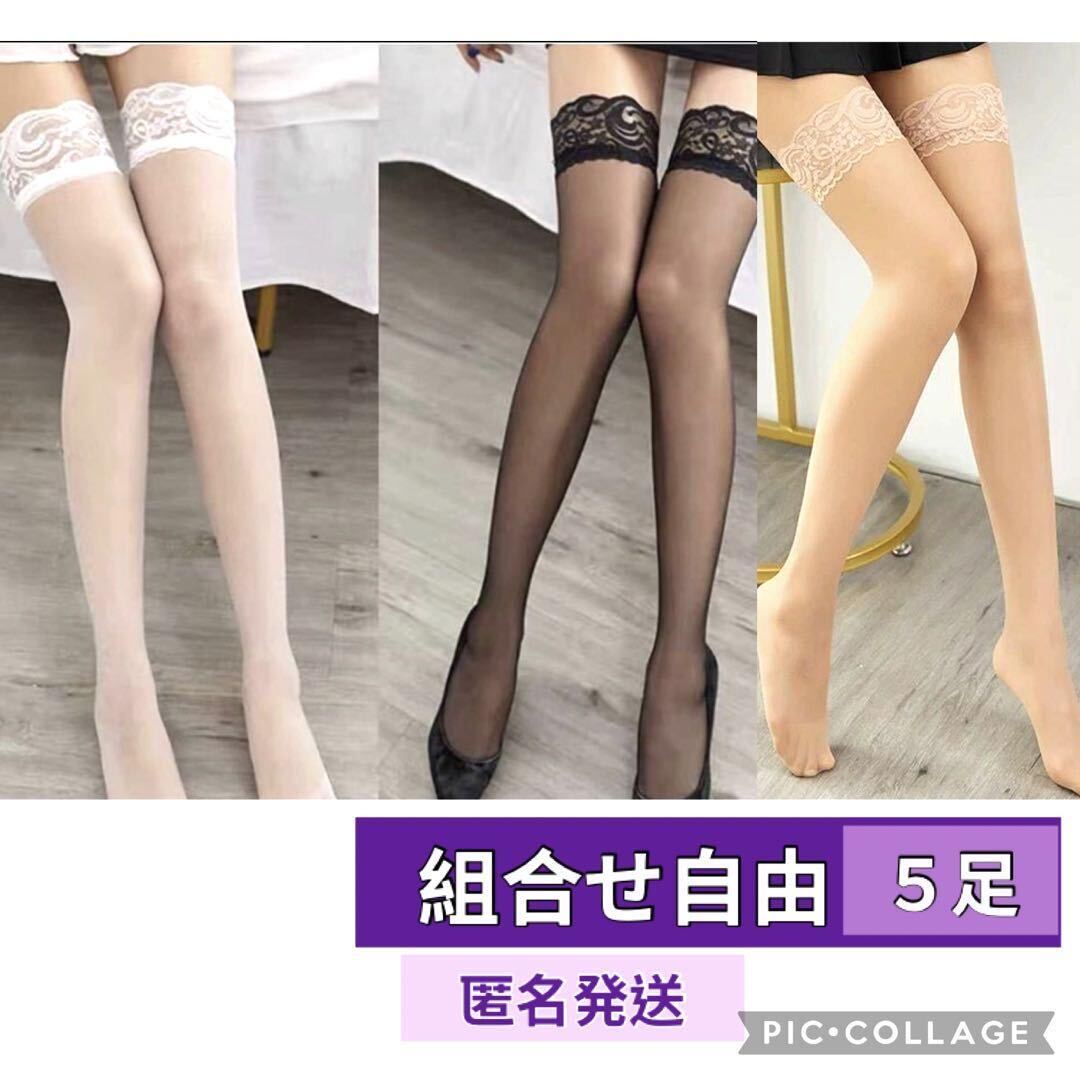 > 5足セット まとめ売り ガーター ニーハイストッキング レース レディース 黒 白 ベージュ 20デニール 薄手 靴下 美脚 タイツ ソックス