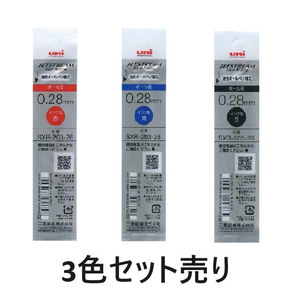 > 三菱鉛筆 uni ジェットストリーム 油性ボールペン替え芯 0.28mm 黒赤青 3本セット売り SXR-203