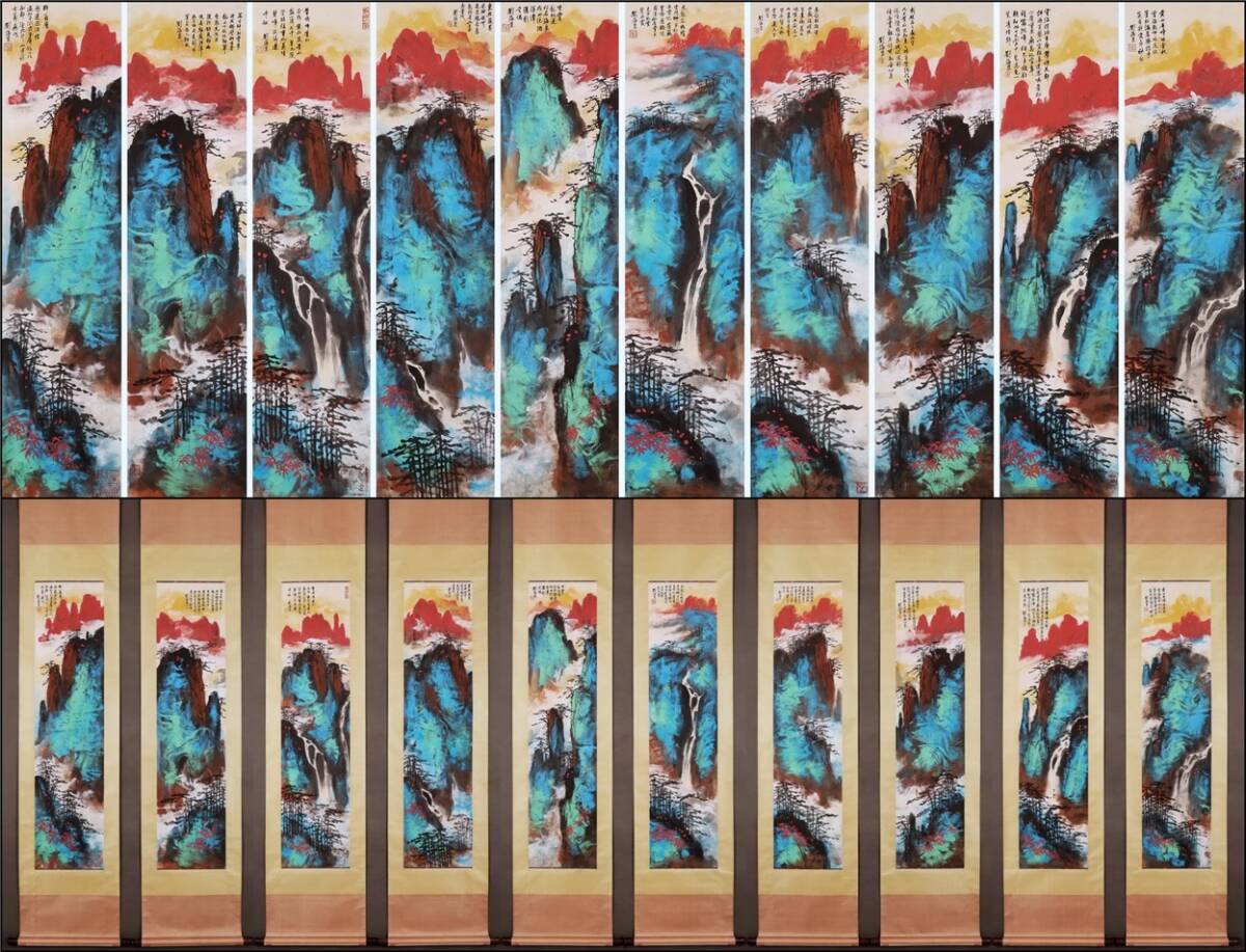 - 古美術 掛け軸 中国・近現代 「劉海粟書」 紙本 【溌墨雲峰十景図】 立軸 書道 巻き物 真筆逸品 肉筆保証 唐物 古画 LT-24907
