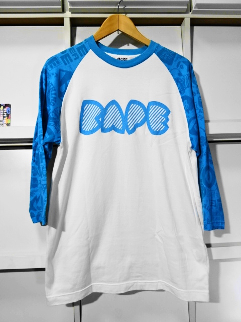 > 初期【M】BAPE ロゴ 総柄 ラグランTシャツ A BATHING APE(ア ベイシング エイプ)NIGO APE HEAD ジェネラル last orgy2 アーカイブ 七分袖