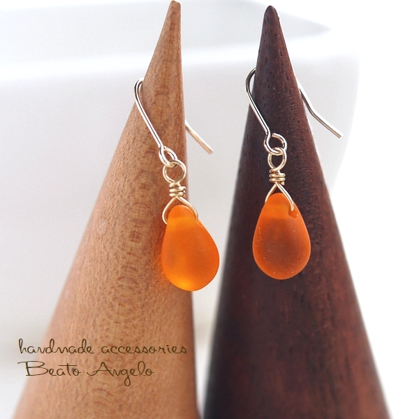 - ◇◆+angelo+K14GF チェコドロップのプチピアス(p-516)オレンジマット チタン樹脂イヤリング可