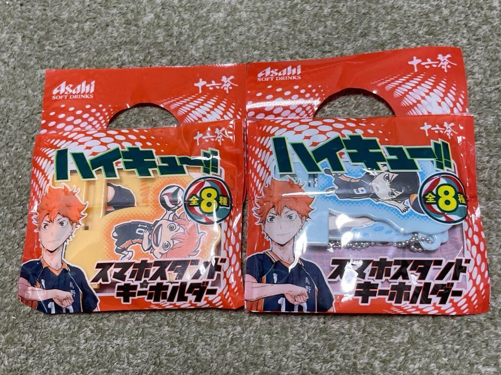 - ハイキュー !! スマホスタンド キーホルダー 2種セット 日向翔陽 影山飛雄 十六茶 おまけ 未開封 即決 送料無料