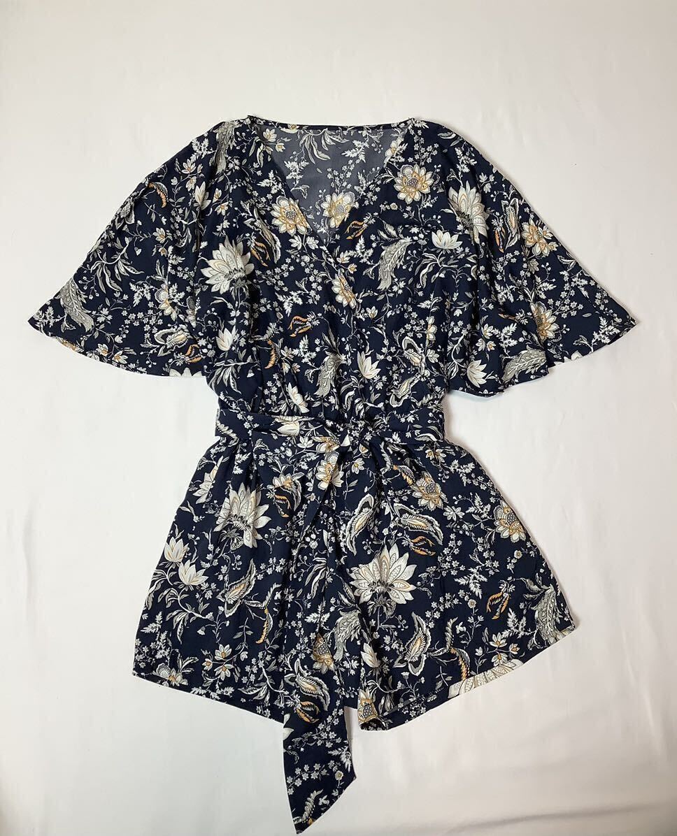 > (未使用 レディース) AMBIENT // 5分袖 総柄 リボンベルト付き カシュクール オールインワン ショートパンツ・サロペット・サイズ F (M位)