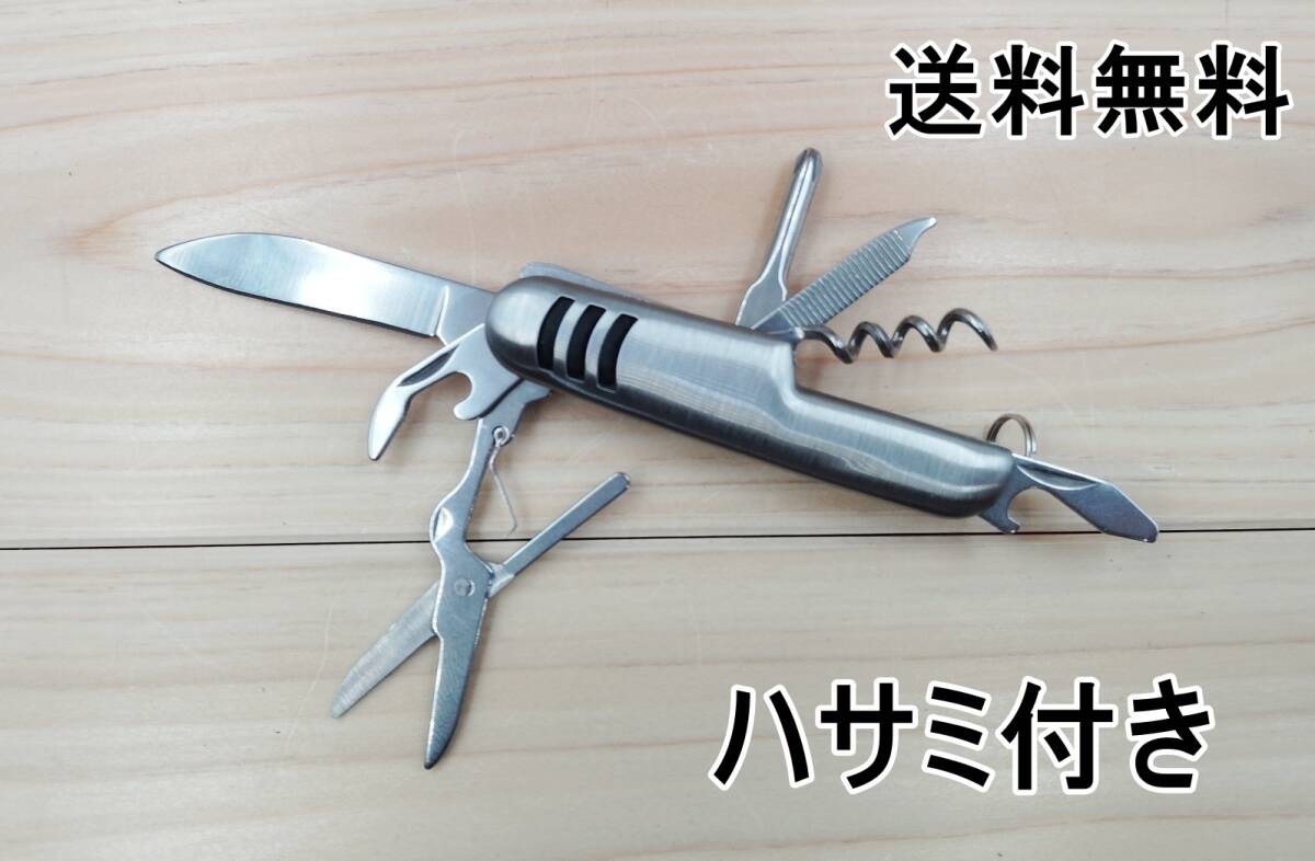 > 新品 多機能 折りたたみナイフ ハサミ付き マルチツールナイフ キャンプ 多機能マルチツール アウトドア キャンプ シルバー 送料無料