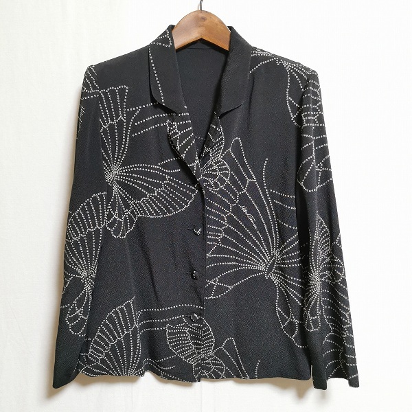- #anc シセンドウ 詩仙堂 ヒトシタムラ ジャケット ちりめん 蝶柄 黒 ベージュ系 美品 レディース [895656]