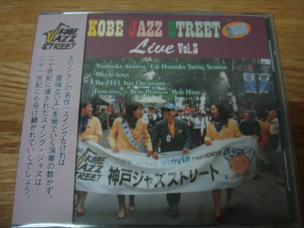 2000年の神戸ジャズストリートでのライブを収録したcdです。秋満義孝、花岡詠二、五十嵐明要、池田公信、徳大寺公忠、といったスインググループのヴォーカルの古閑みゆき が加わったバンドは本当に素晴らしく、聞き所が多いです。秋満義孝のテディウィルソン直伝のピアノや、五十嵐明要の甘いサックスが特にいいですね