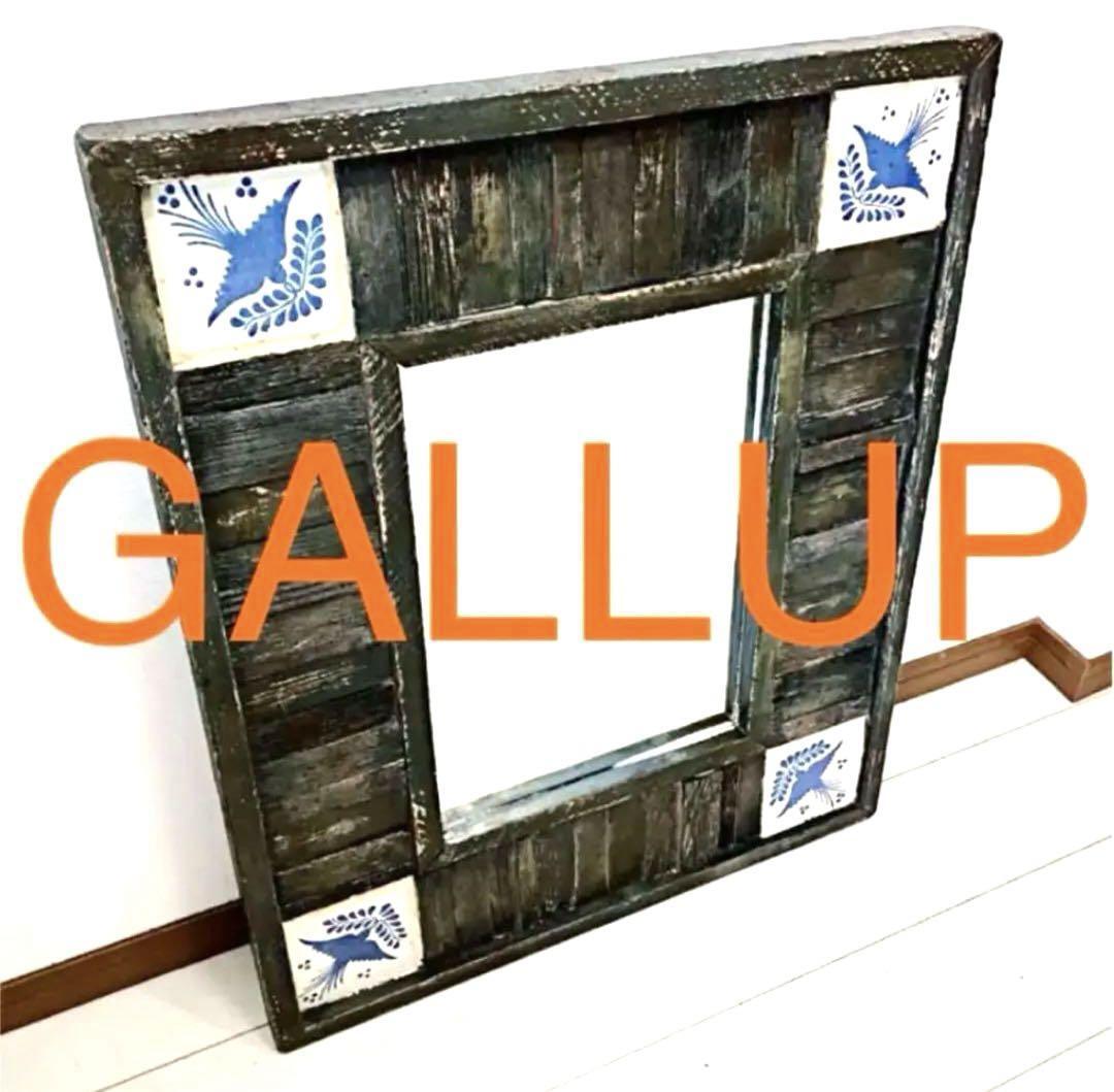 > 雰囲気抜群 GALLUP ギャラップ バーンウッド アンティーク ミラー 鏡 タイル USA 古材 古木 ビンテージ 燕 家具 男前 玄関 リビング 洗面所