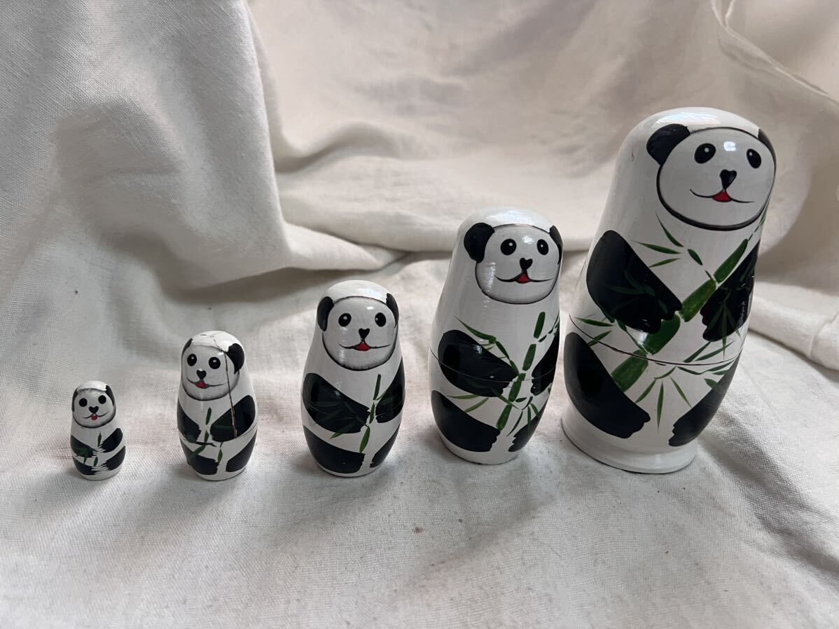 - ◆訳あり パンダのマトリョーシカ 木製 オブジェ 民芸品 人形 置物 ◆B-1746