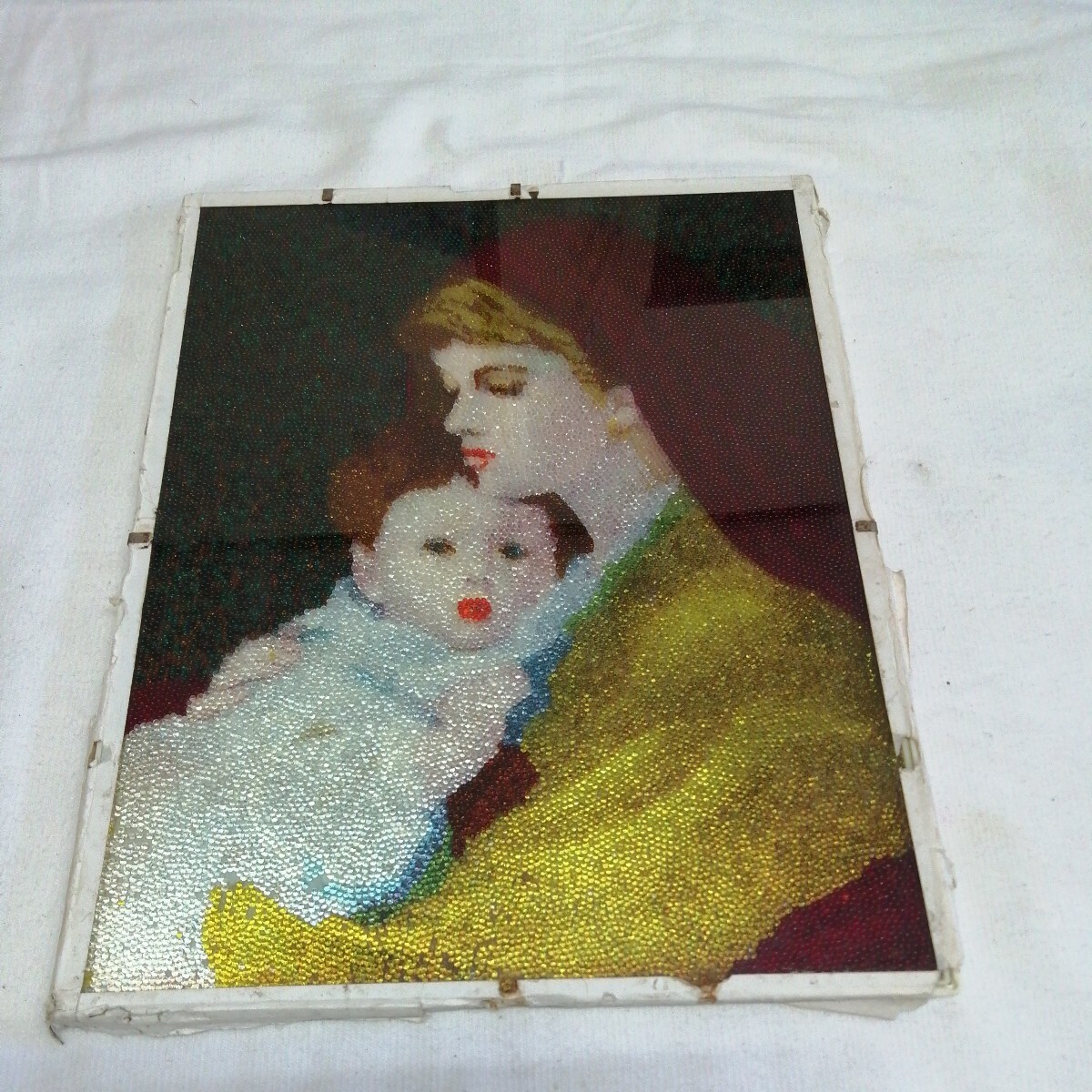 - ビーズ アート 絵 美術品 ベビー ママ 外人 ガラス (約260×334mm)
