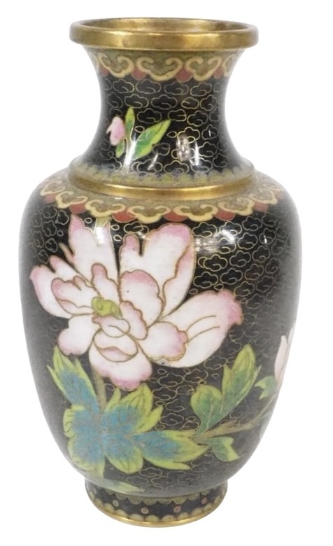 - 美しい色彩で牡丹の絵が表現されている作品!中国古玩 中国美術 景泰藍「有線七宝花図花瓶」花器 壺 1970〜1980年代 KYI607