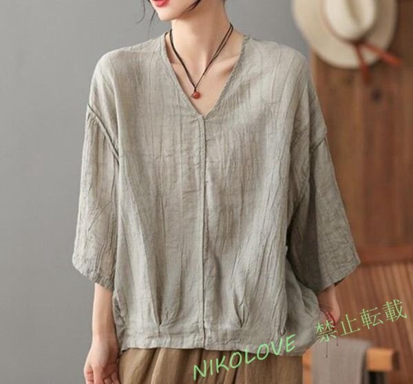 - 新品ブラウス カジュアル ゆったり 可愛い 通勤着 無地 チュニック 大きいサイズ 森ガール 素敵な ブラウスシャツ 復古風 グレー LH566