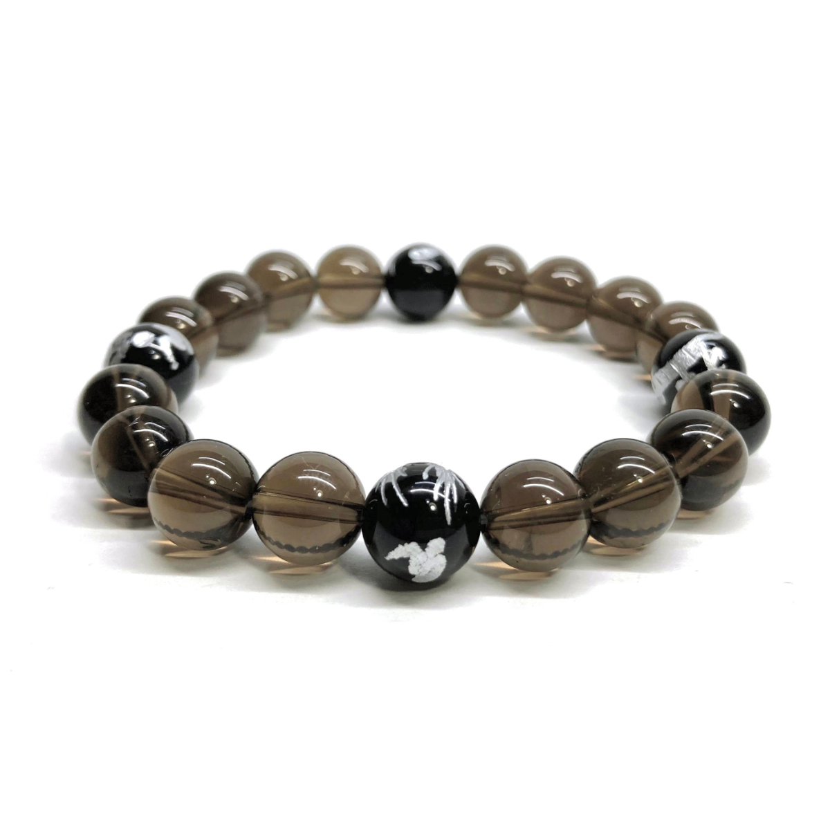 - 10mm 四神獣銀彫オニキス×スモーキークォーツ パワーストーン ブレスレット天然石 運気上昇 開運 金運 恋愛運 お守り 青龍 白虎 玄武 朱雀