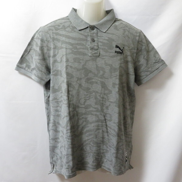 > 古着 メンズL PUMA/プーマ ポロシャツ 半袖 カジュアル 普段着 グレー/迷彩柄 572943