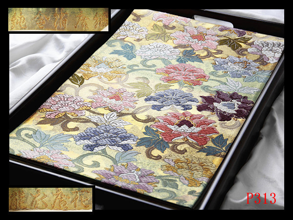 - P313厳選西陣 純金箔唐織 振袖可 能衣唐花 豊かな色彩 正絹純金糸六通高級美術袋帯 新品同様 ◇検◇簪着物名古屋帯帯締め