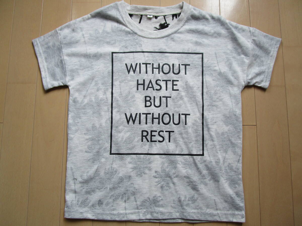 > *140*英字ロゴ 南国 ヤシの木プリント 半袖Tシャツ♪美品!!グレー