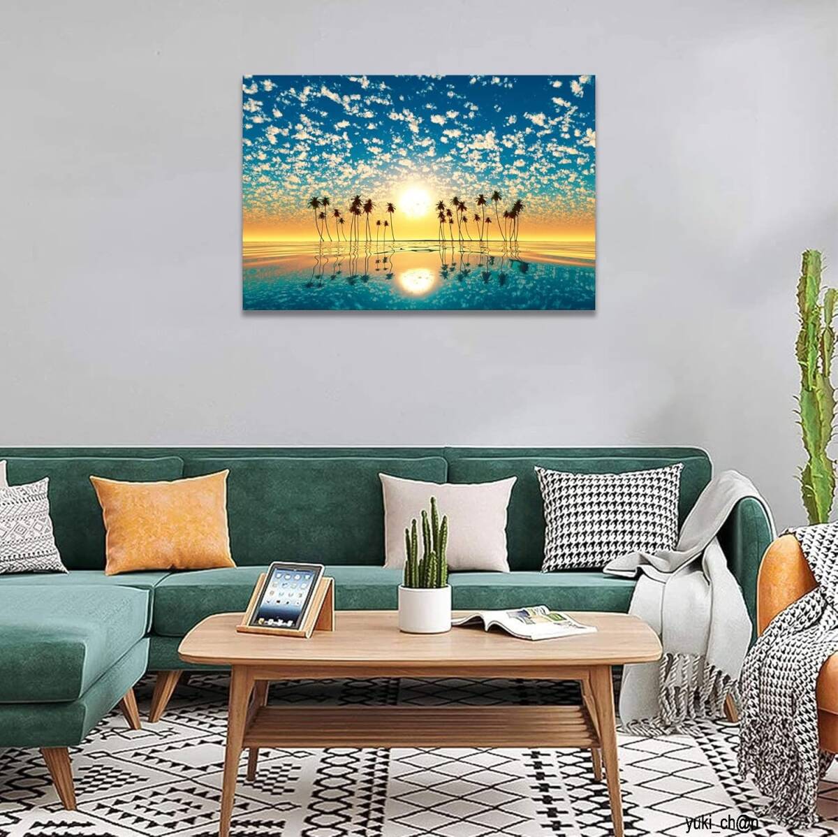 > アートパネル 40x60cm 海 椰 自然風景 日光 絵画 太陽 風景画 壁掛け 風水 玄関 開運 室内装飾 木枠付きの完成品