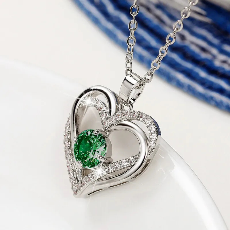 - ネックレス★ペンダント★キュービックジルコニア★ハート★グリーンカラー★ギフト★プレゼント★未使用品