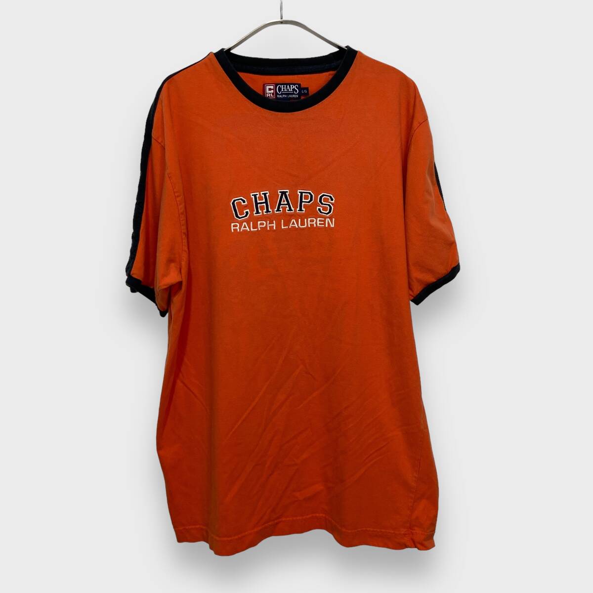- 送料無料☆CHAPS☆チャップス☆リンガーTシャツ☆刺繍ロゴ☆L☆G24M