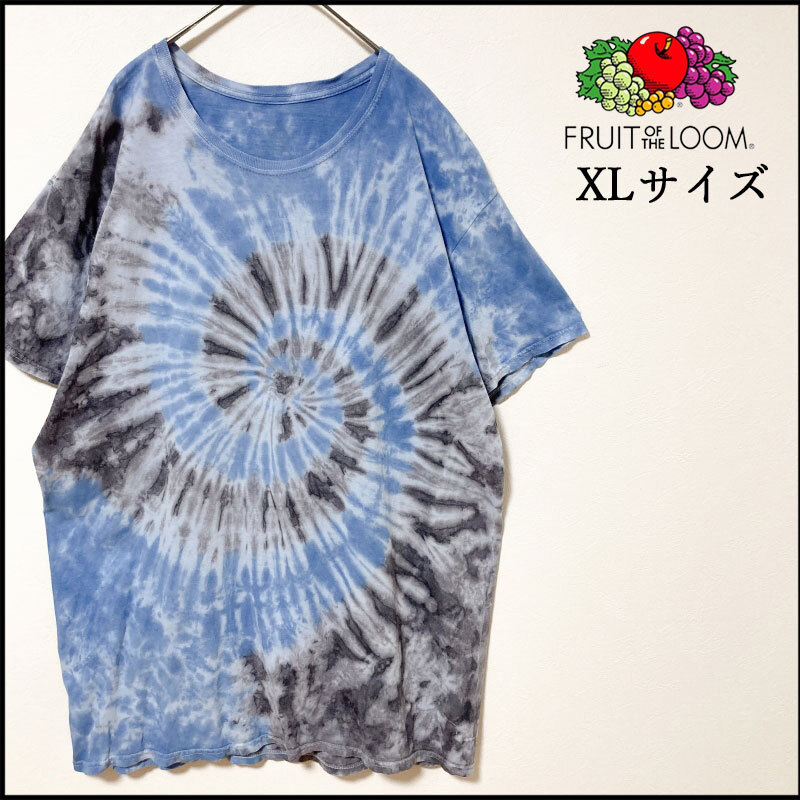 - メンズタイダイ染め半袖TシャツXL 古着屋 総柄 青黒 ブランド 渦巻き 春夏物