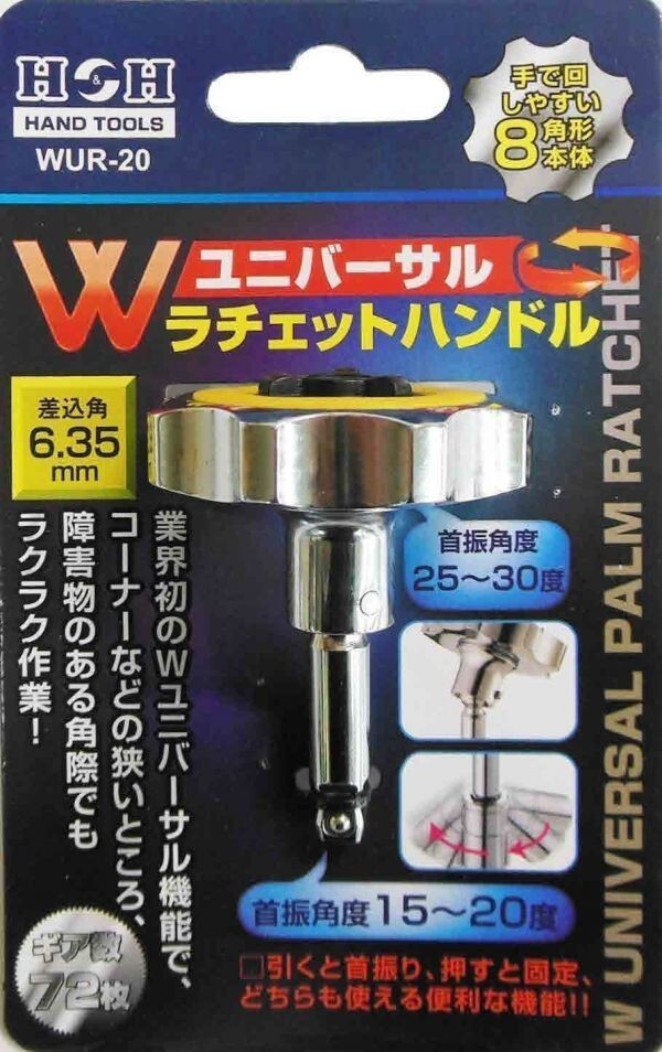 - H&H Wユニバーサルラチェットハンドル WUR-20 差込角6.35mm