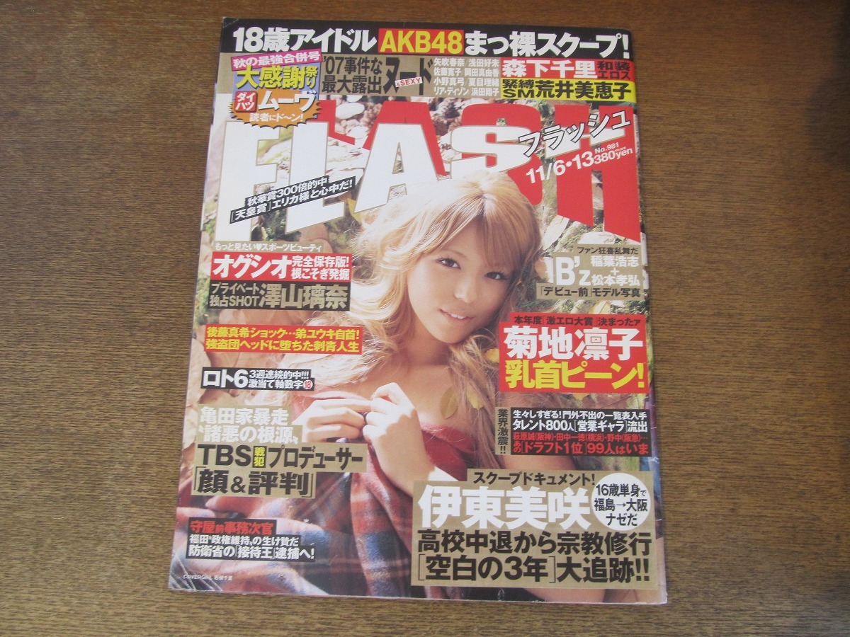 - 2408mn●FLASH フラッシュ 981/2007平成19.11.6・13●表紙:若槻千夏/森下千里/山田まりや/大塚亜季/荒井美恵子/小野真弓/澤山璃奈/伊東美咲