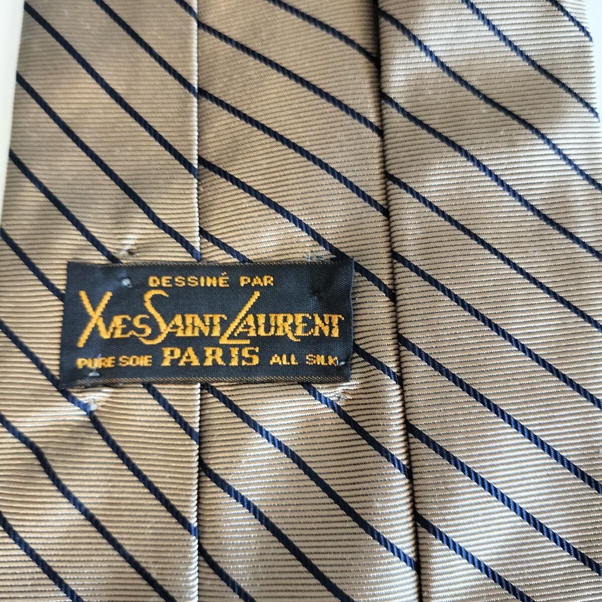 - イヴサンローラン(YVES SAINT LAURENT)②茶紺ストライプワンポイントYSLロゴネクタイ
