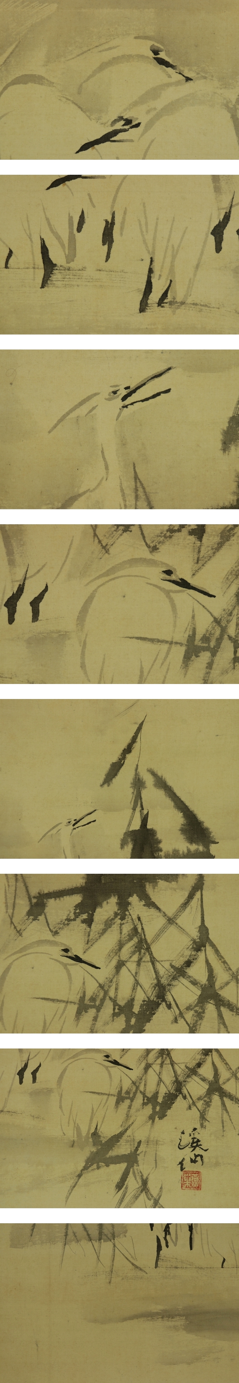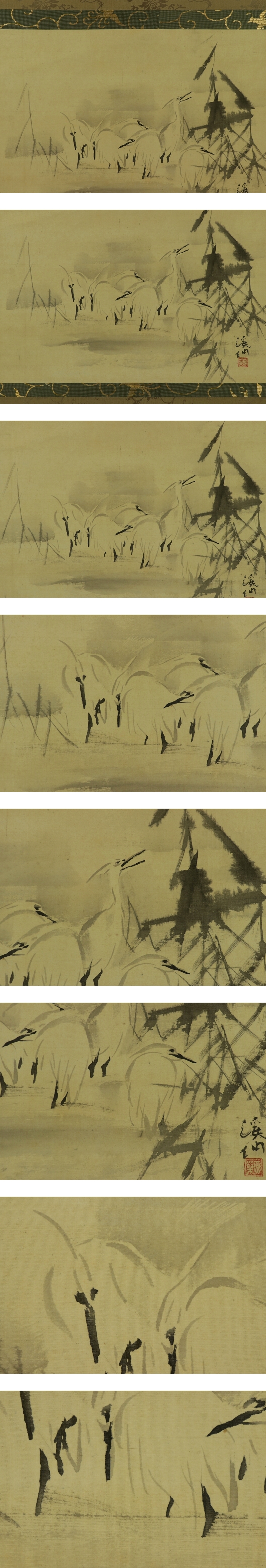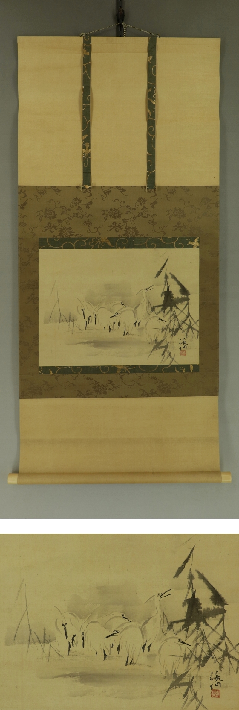 - 【模写】富田渓仙【白鷺図】◆絹本◆合箱◆掛軸 s06056
