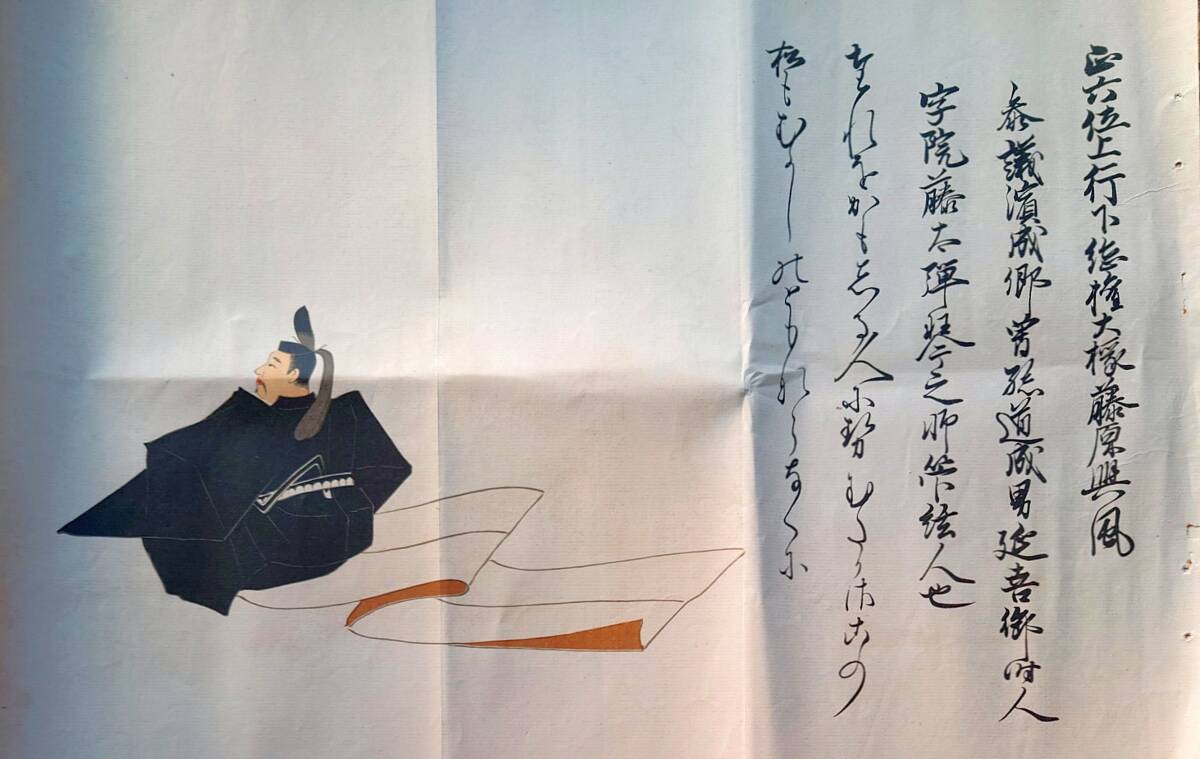 - f24080411〇印刷 絵画 佐竹本 三十六歌仙 藤原興風 たれおかはしる人にせむたかさこの まつもむかしのともならなくに 昭和時代〇和本古書