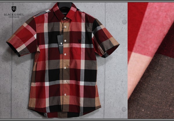 > 新品ブラックレーベル クレストブリッジ 春夏 リネン コットン クレストブリッジチェック 半袖シャツL/赤/1.8万BLACK LABEL CRESTBRIDGE/麻