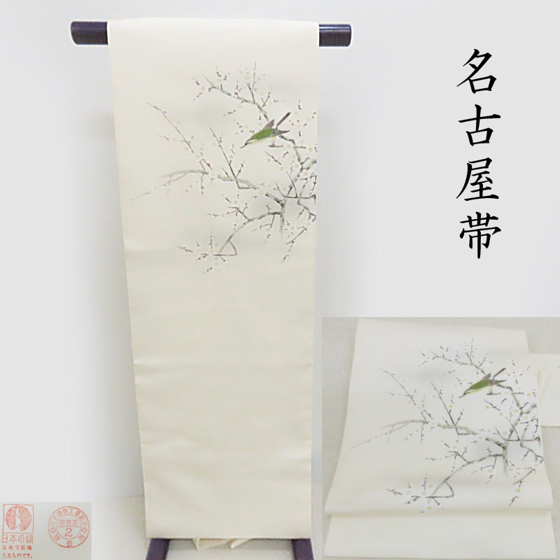 - Club藤★名古屋帯 梅に鶯 新品 九寸名古屋帯 国産丹後絹 御仕立上り (3341)