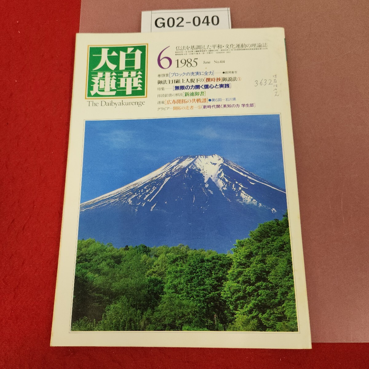 - G02-040 大白蓮華 6 昭和60年6月号-第414号 聖教新聞社 表紙書き込み有り